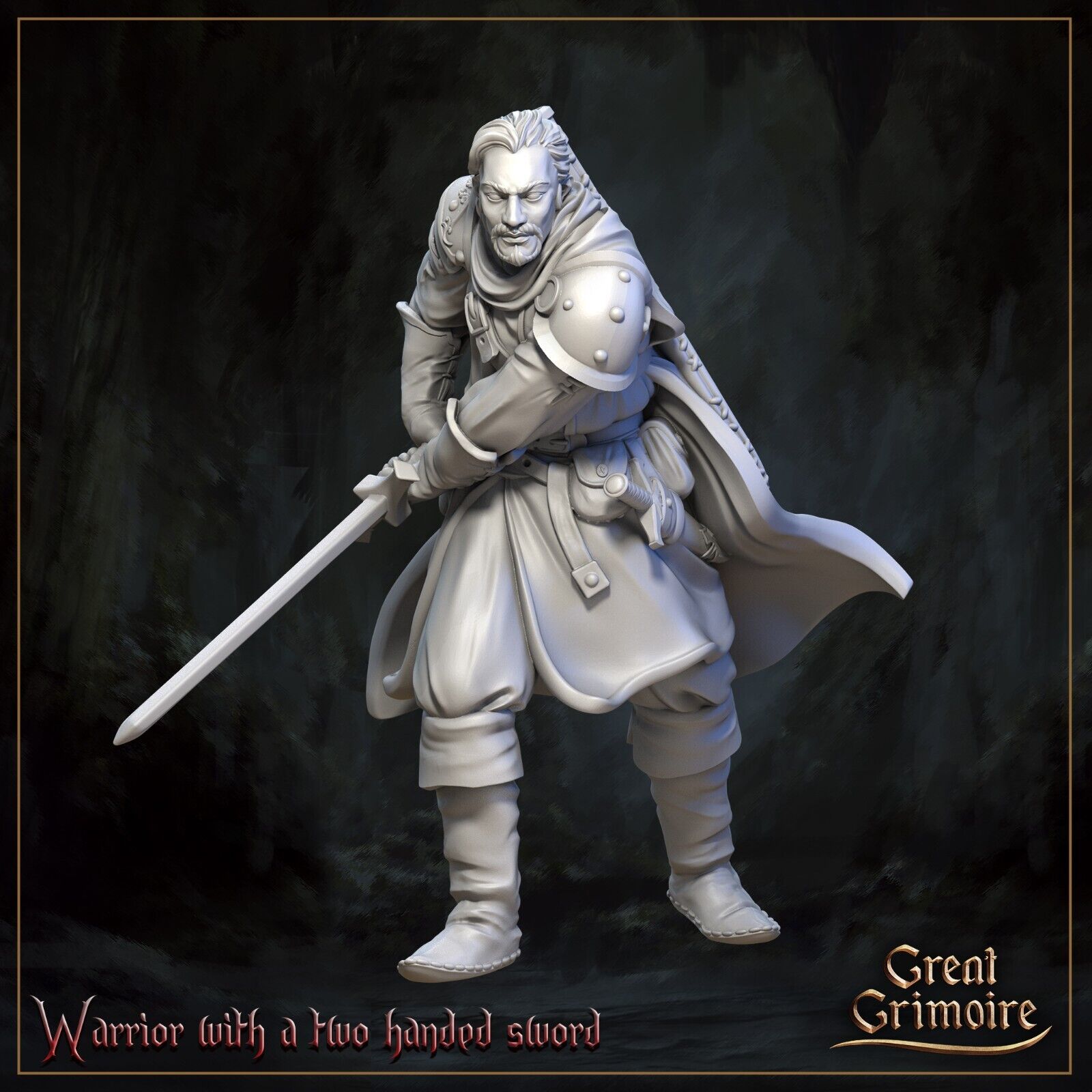 Warrior w/ Two Handed Sword Mini Miniature Model Figure RPG Tabletop Gaming D&D
