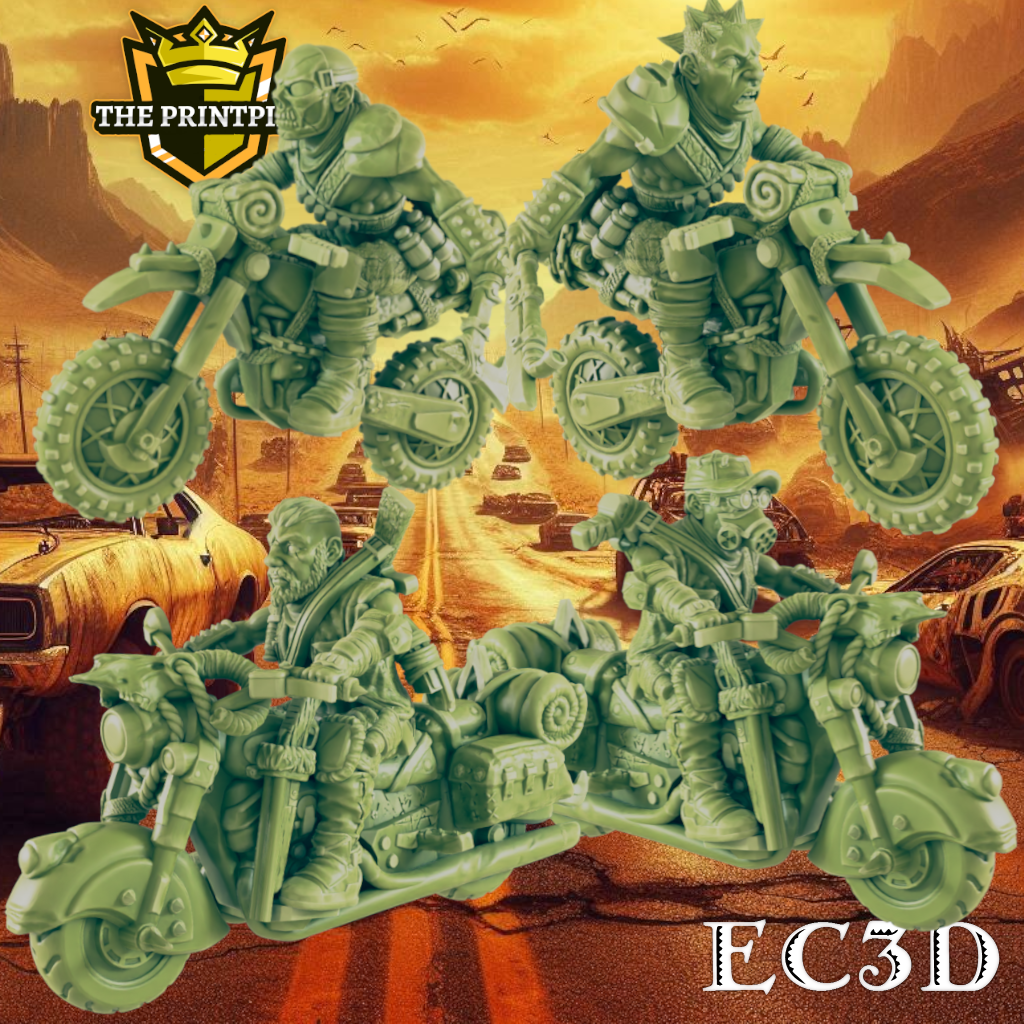 Wasteland Bikers | Biker Gang | Post Apocalypse Bad Guy Miniature Figure | Wasteland Warfare Cyber Punk Dystopian Future | 32mm Scale Model