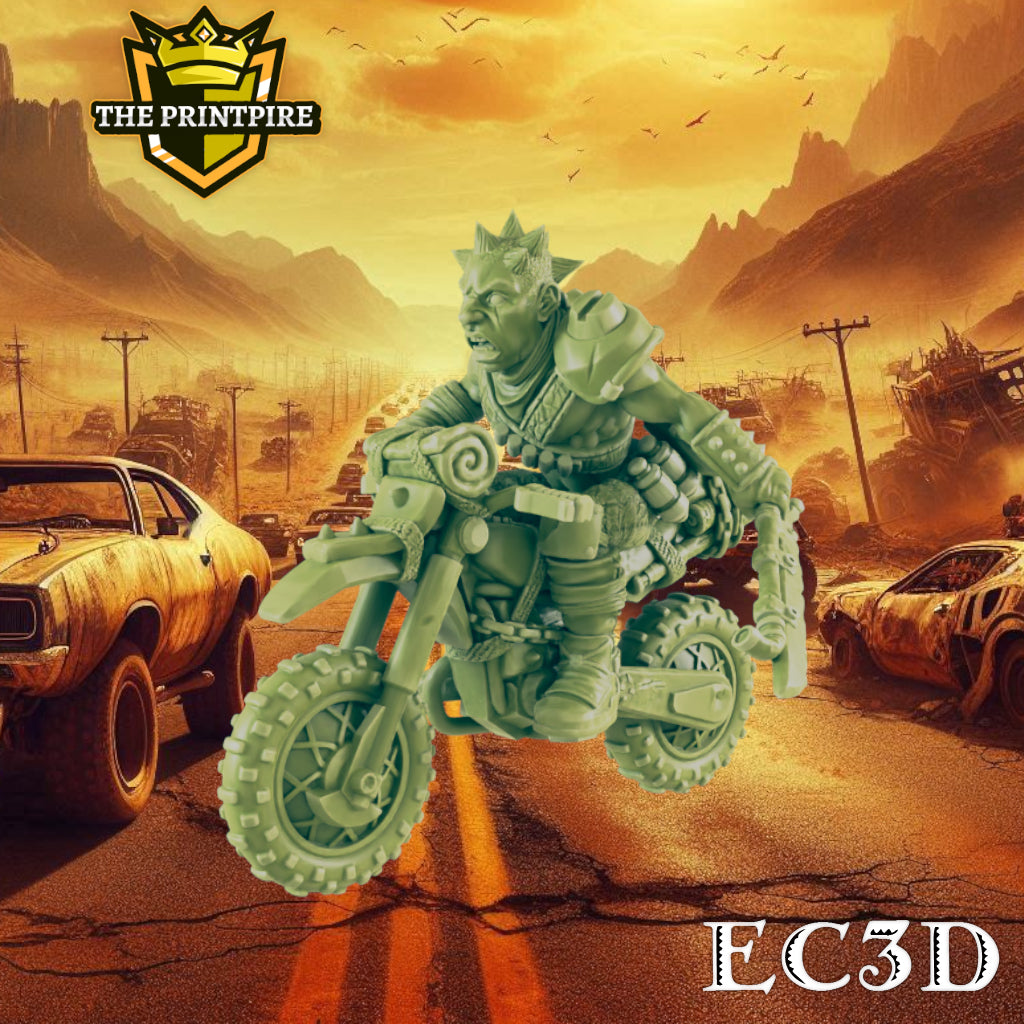 Wasteland Dirt Biker Punk | Post Apocalypse Bad Guy Miniature Figure | Wasteland Warfare Cyber Punk Dystopian Future | 32mm Scale Model