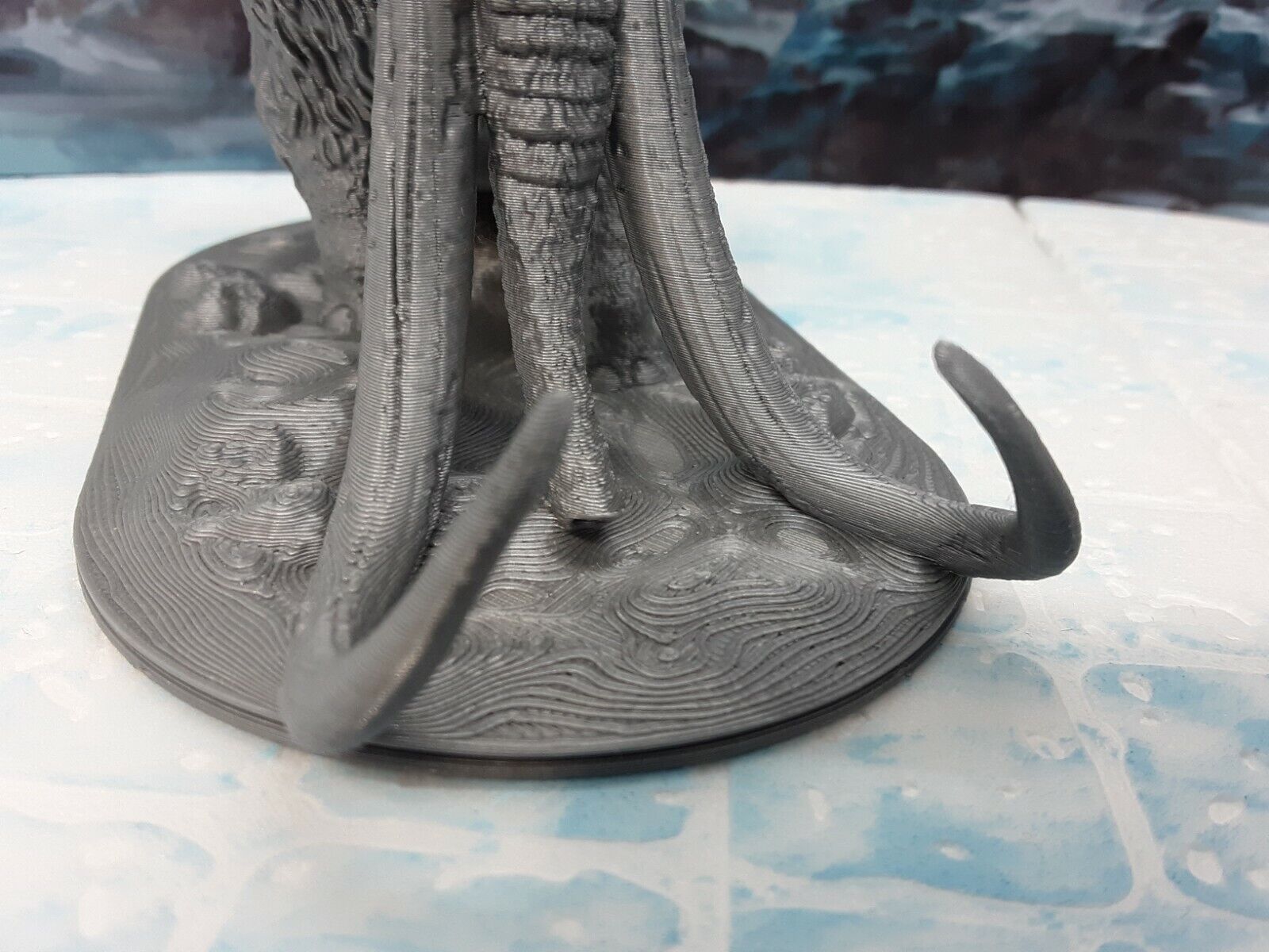 This unpainted 3D printed model comes in silver, easy to paint, PLA plastic. It measures approximately 3" tall. The base measures 5" x 3". It is placed on a 1" x 1" grid surface in the photo, and beside a D20 die (NOT included in sale) for size reference. This piece is sized to work with all 28mm/32mm scale or similar miniatures from many popular RPG dice games such as Dungeons and Dragons, Pathfinder, Warhammer, and many others.
